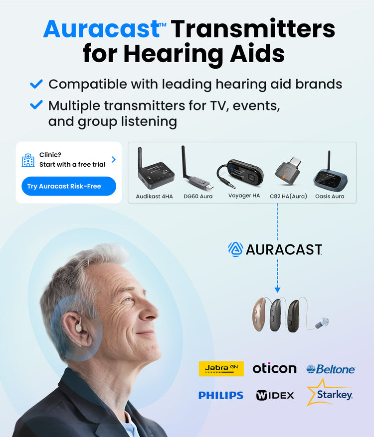 Avantree leads the way in Auracast™ — connecting all Auracast-enabled hearing aids & earbuds directly, while also enabling group listening for families, tours, classrooms and venues.