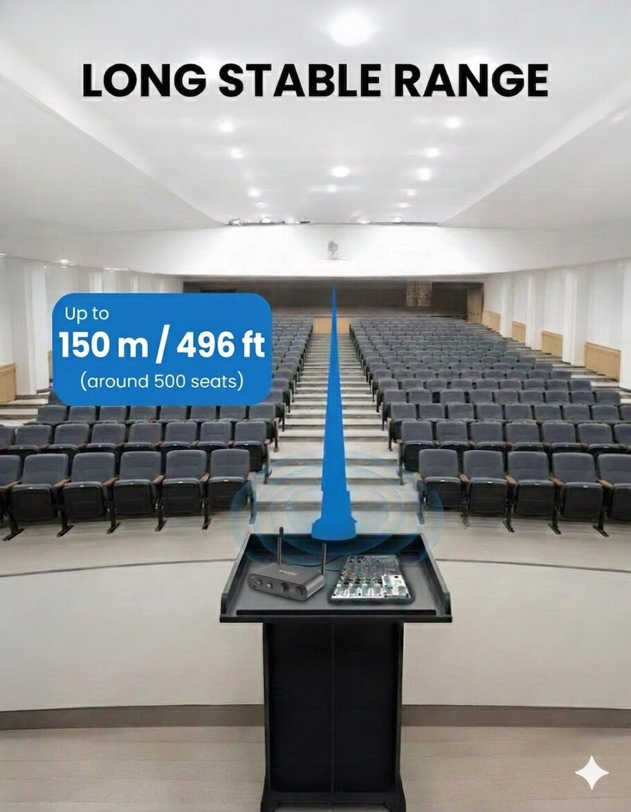 300 m Auracast Bluetooth-Sender mit großer Reichweite für Kirchen & Veranstaltungsorte, unbegrenzte Anzahl an Hörgeräten/Empfängern, XLR/BT-Eingang, 20 Stunden Akkulaufzeit