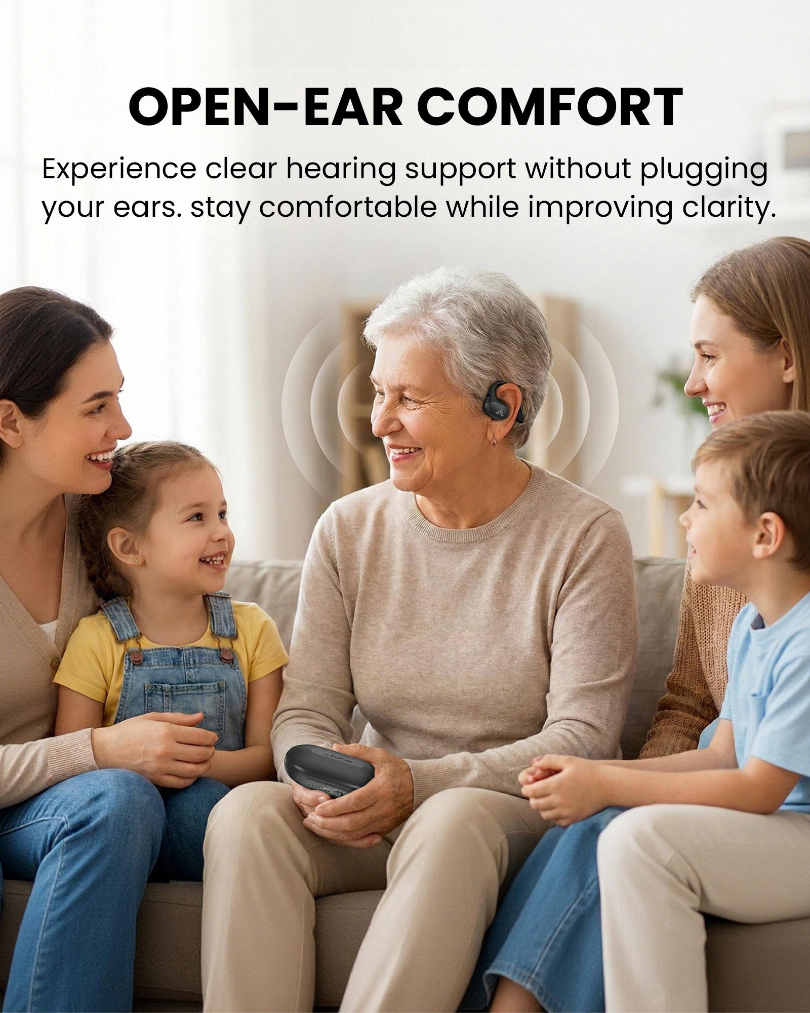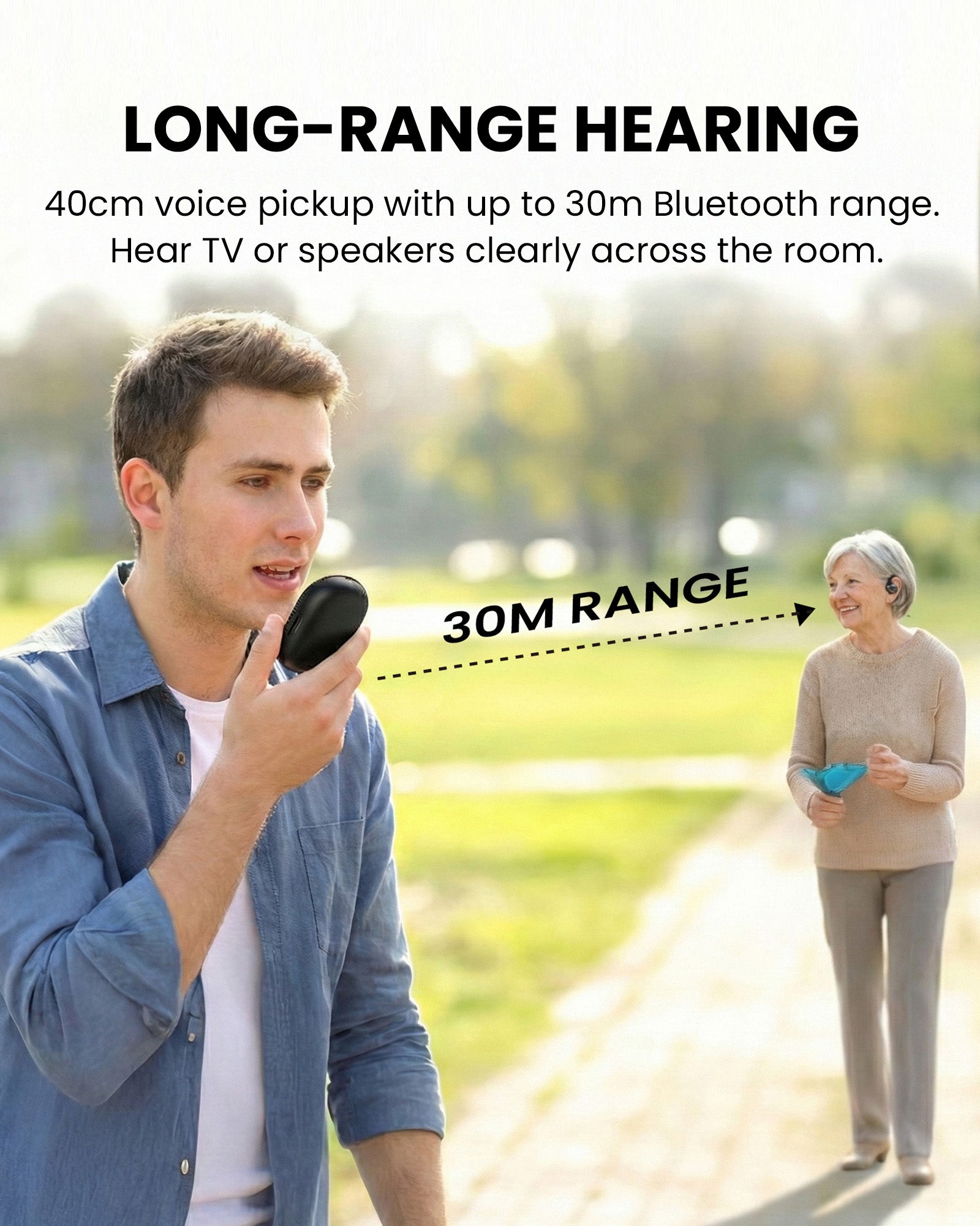 50dB Open-Ear Bluetooth Hearing Amplifier with Remote Mic