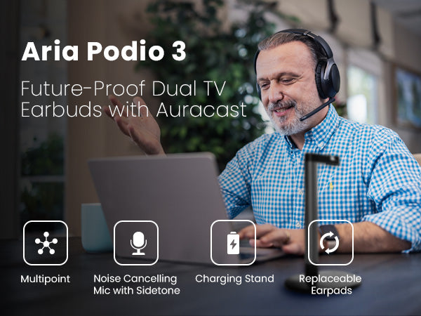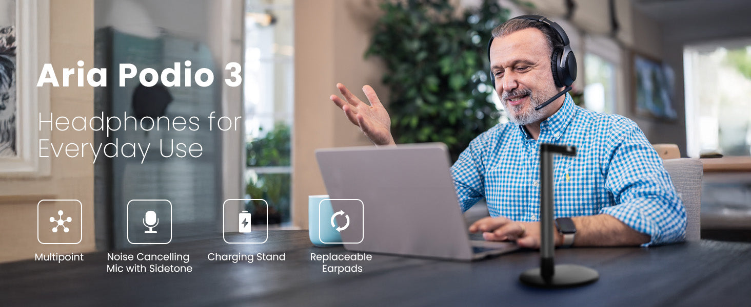 Wireless Headset with ANC & Detachable Boom Mic + Charging Stand