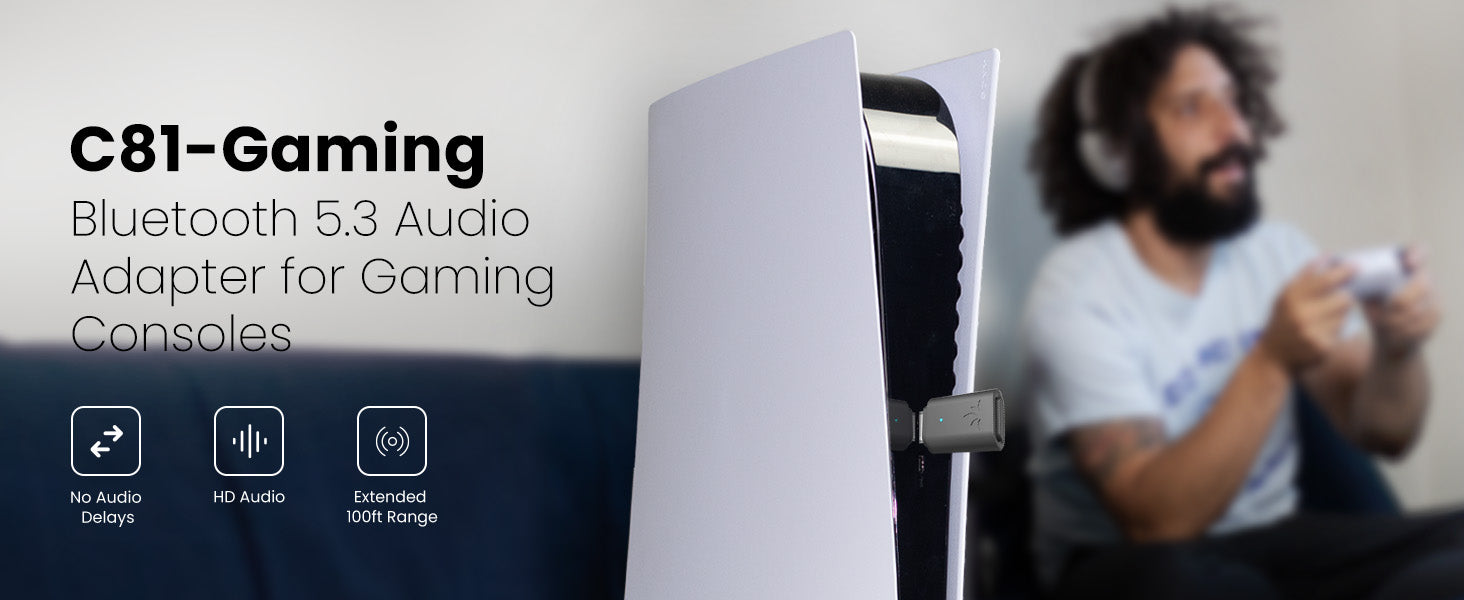 Wireless audio transmission from PS5 / PS4 / Switch to Bluetooth headphones or earbuds (e.g., AirPods) For PC use, please consider the C81-PC version |