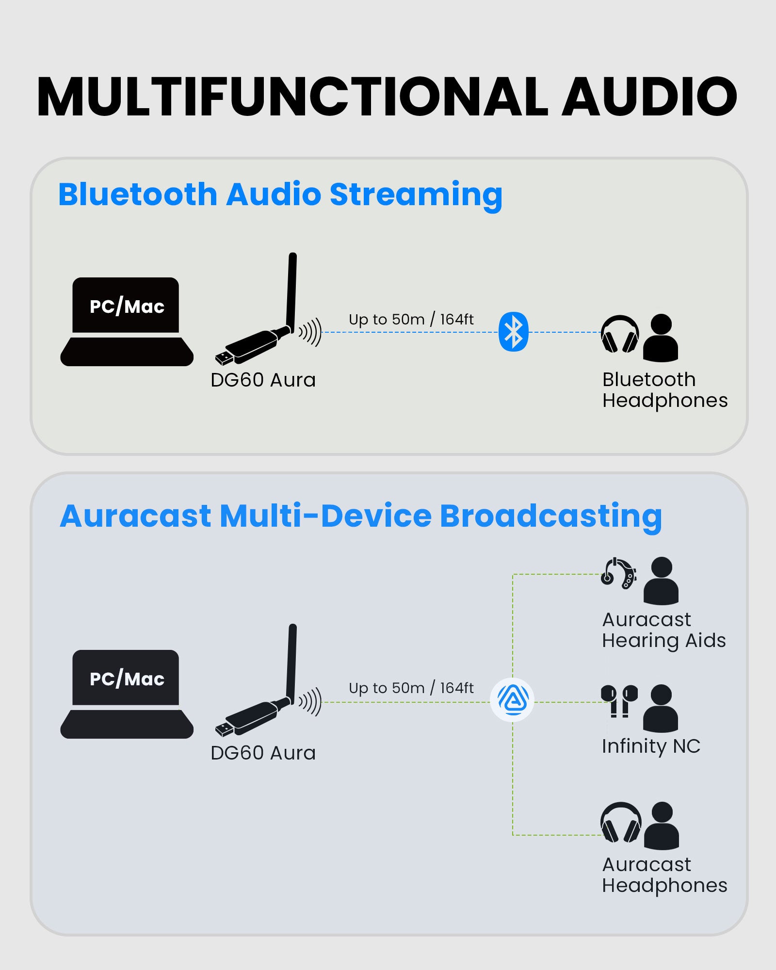 Auracast & Bluetooth USB Transmitter for Headphones & Hearing Aids