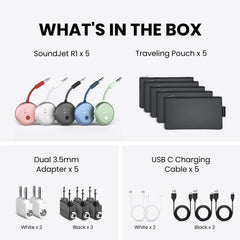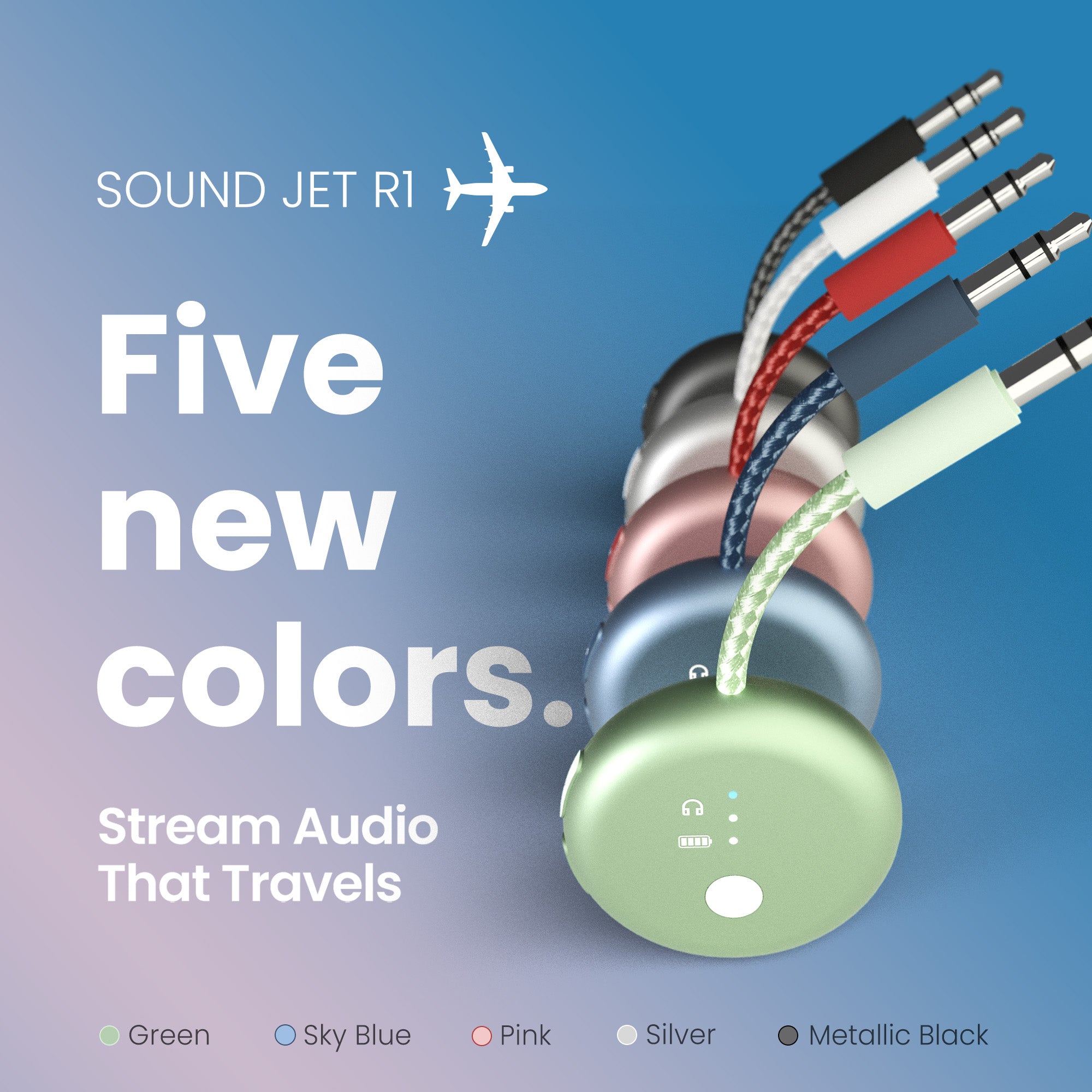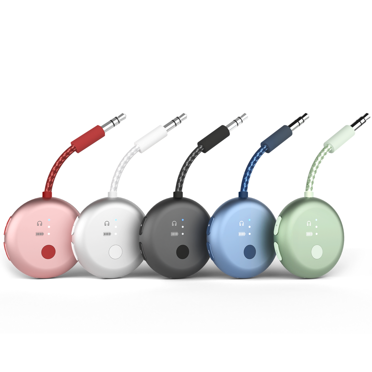 Pack of 5 Airplane Bluetooth Adapters for Headphones & AirPods Travel Flight, aptX Adaptive, 20H Battery, Wireless Audio Transmitter with Qualcomm Chip – Five-Color Set