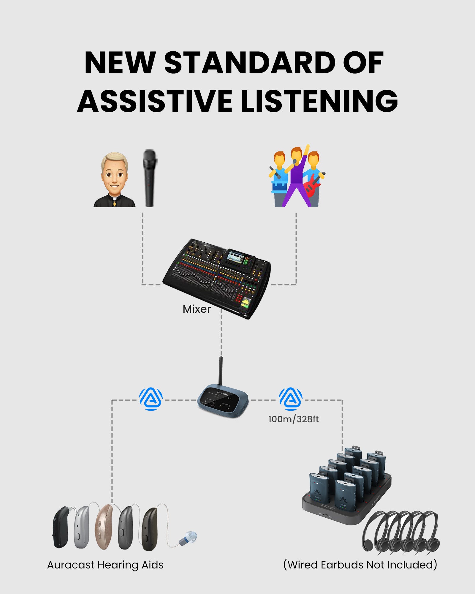A: Yes. Users can listen using their own Auracast-compatible hearing aids or Auracast headphones without venue-managed pairing.
