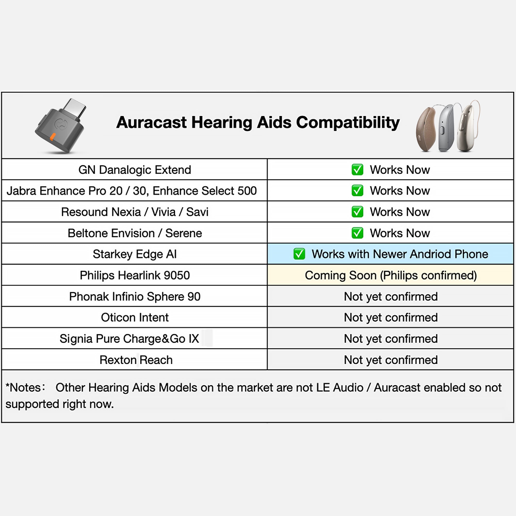 A: No. This is for Auracast hearing aids only, not for headphones or voice calls.