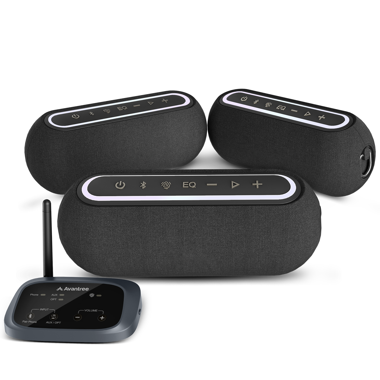 | Latency | Low latency, optimized for group listening | Low latency, optimized for group listening | Ultra-low latency on AUX/Optical, higher delay on Bluetooth input | Ultra-low latency (AUX/Optical only) |