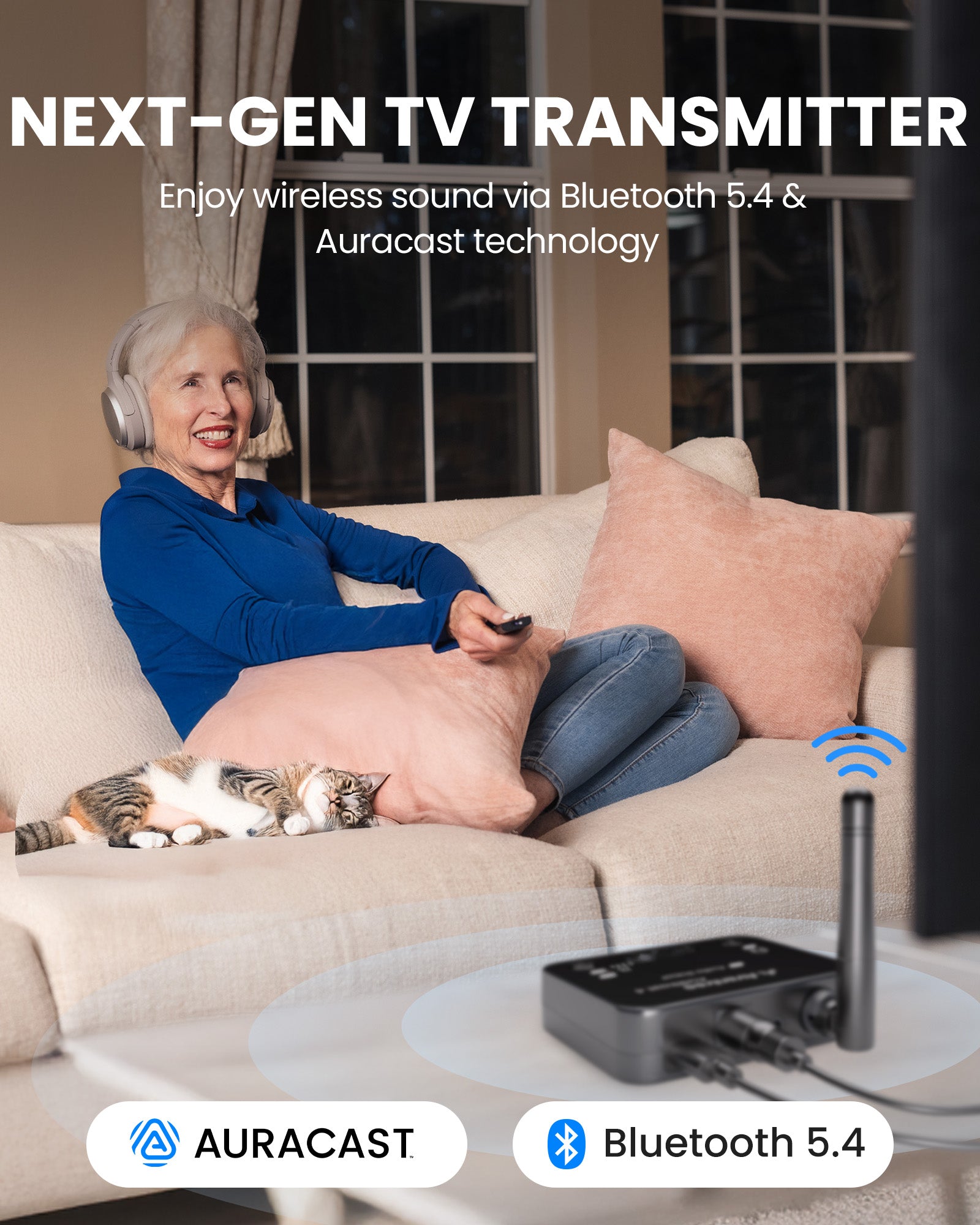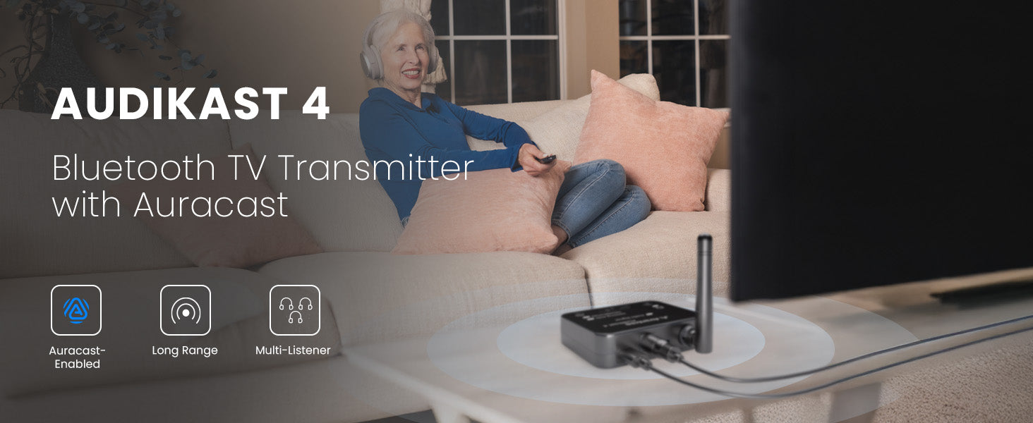 Bluetooth 5.4 TV Transmitter with auracast for headphones and hearing aids