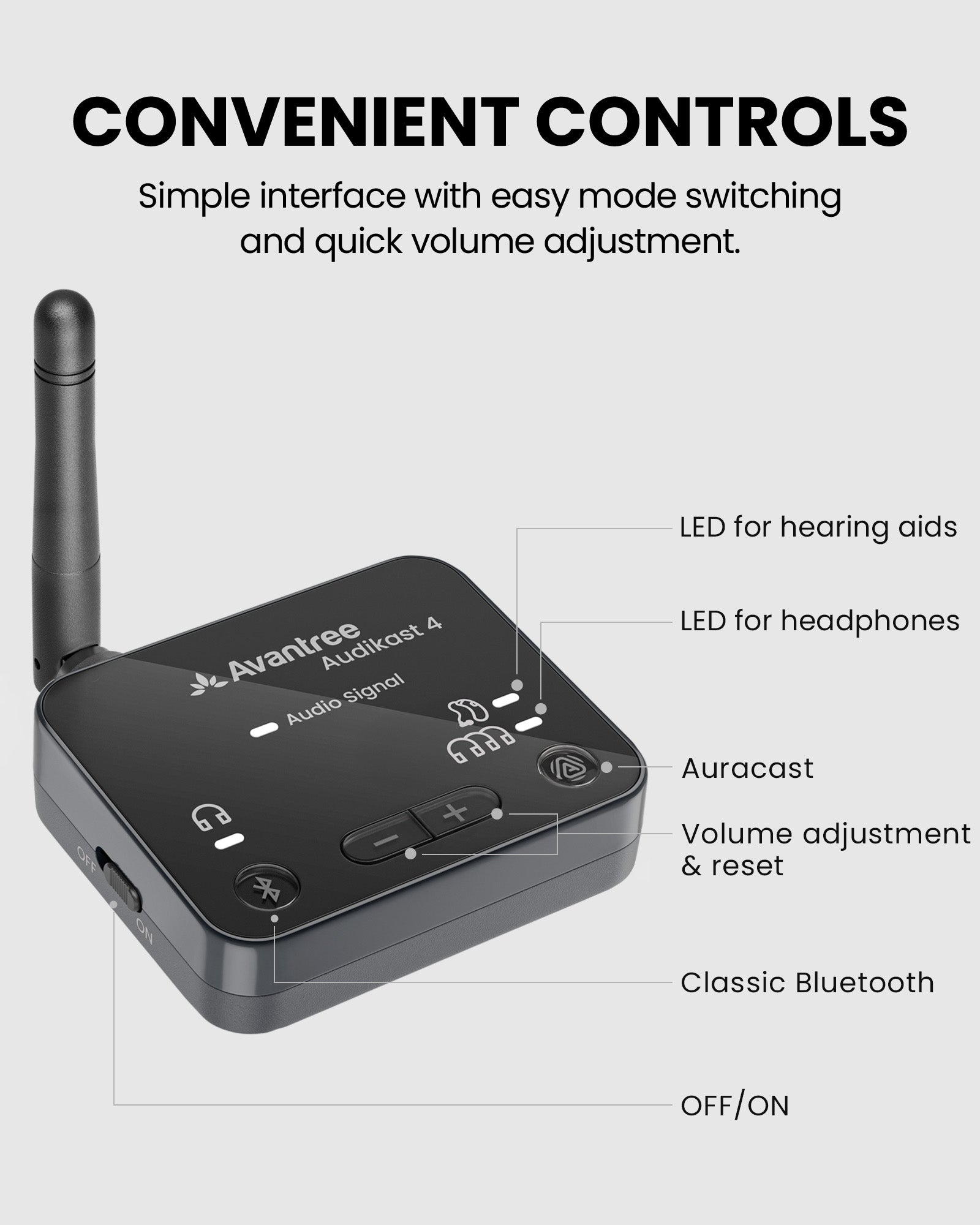 We recommend our Auracast-ready devices – Avantalk Infinity earbuds, Avantree AuraGo headphones, and the Avantree Loop receiver. They are part of our tested Auracast ecosystem and work seamlessly for group listening.