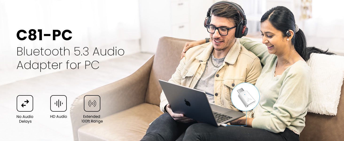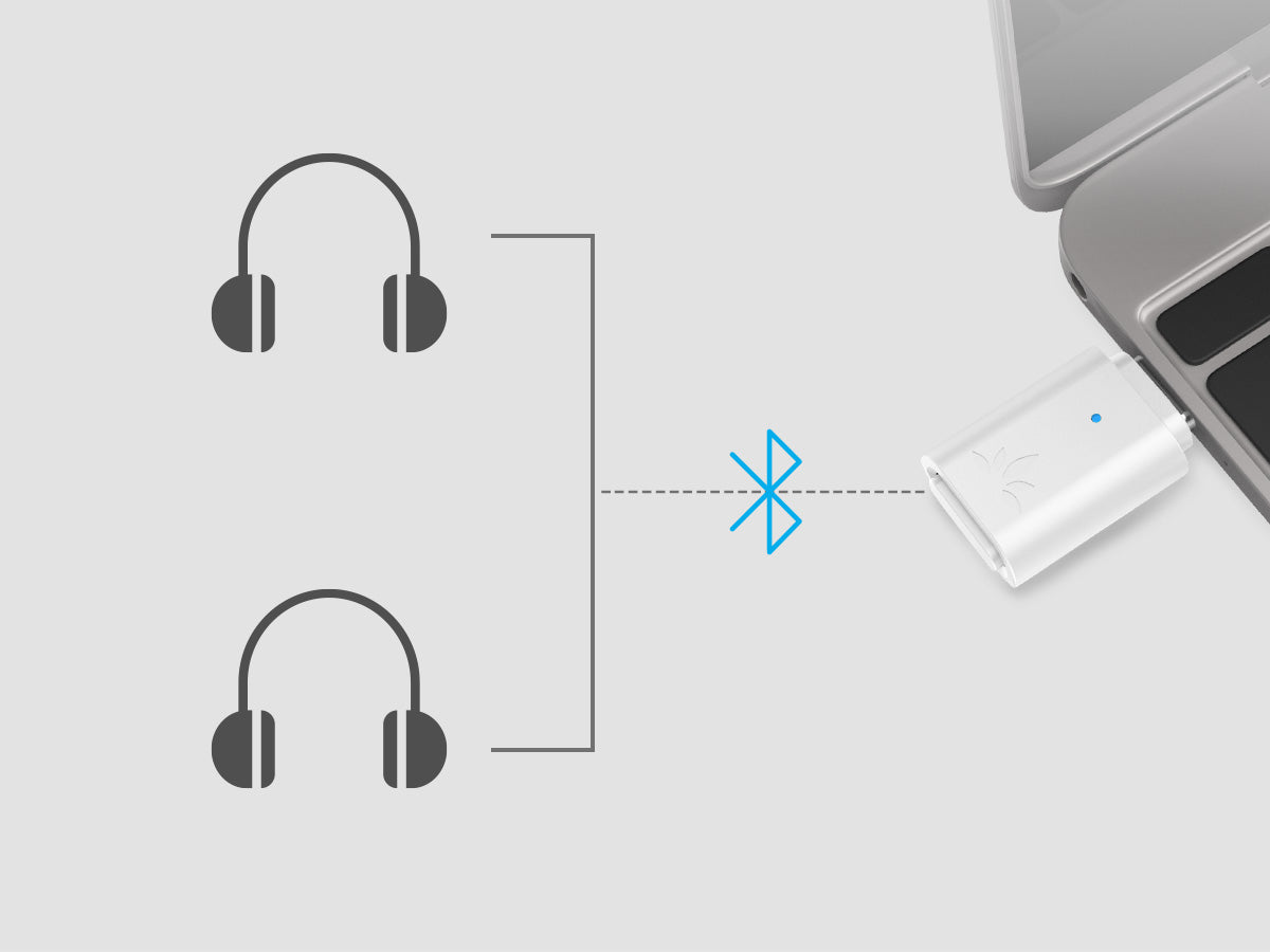 The included adapter allows you to wirelessly transmit audio from both USB-C and USB-A ports.