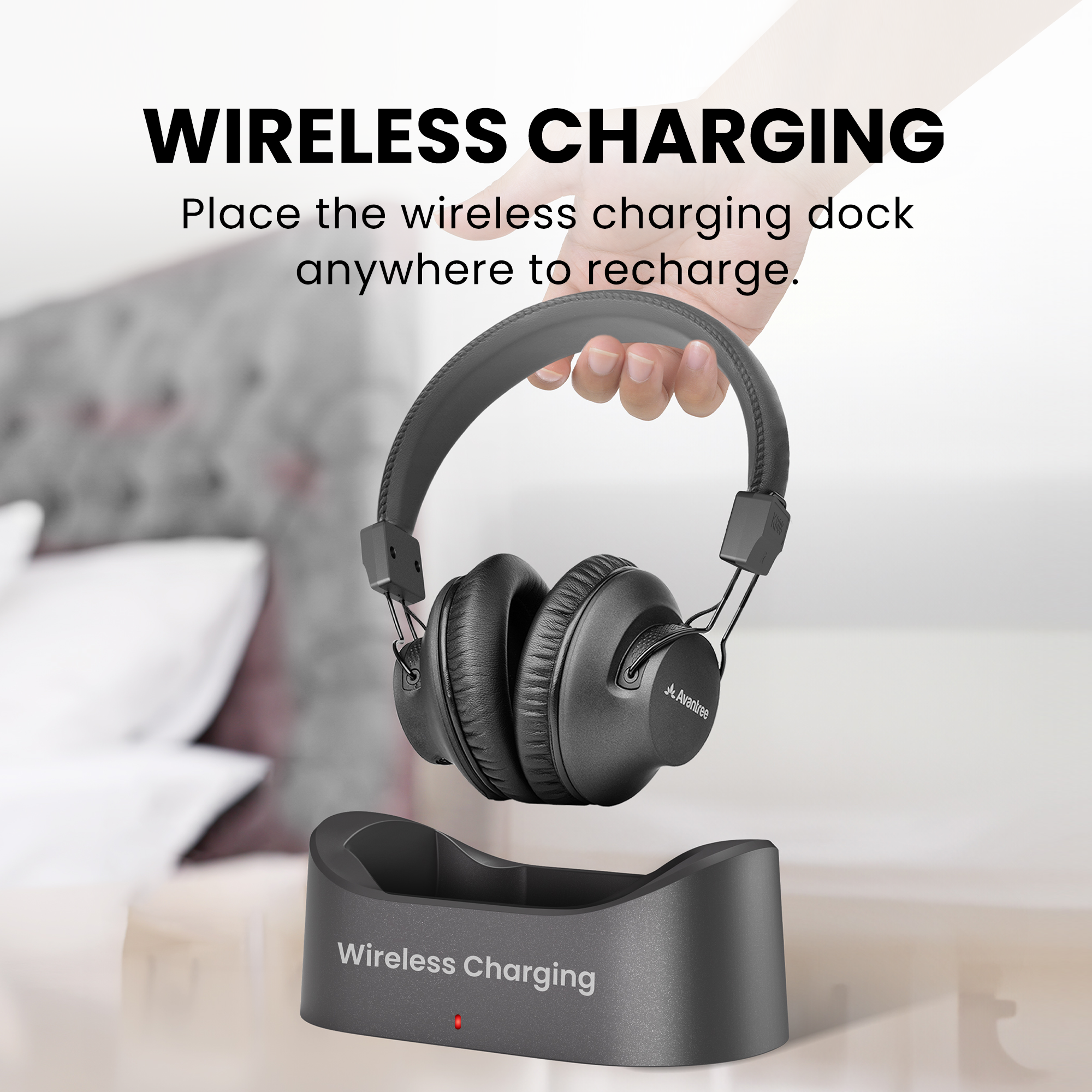 Step-by-step online instructions make setup quick and easy, even for non-tech users. Includes a wireless charging dock you can place near your sofa or bed, just drop the headphones on to recharge.