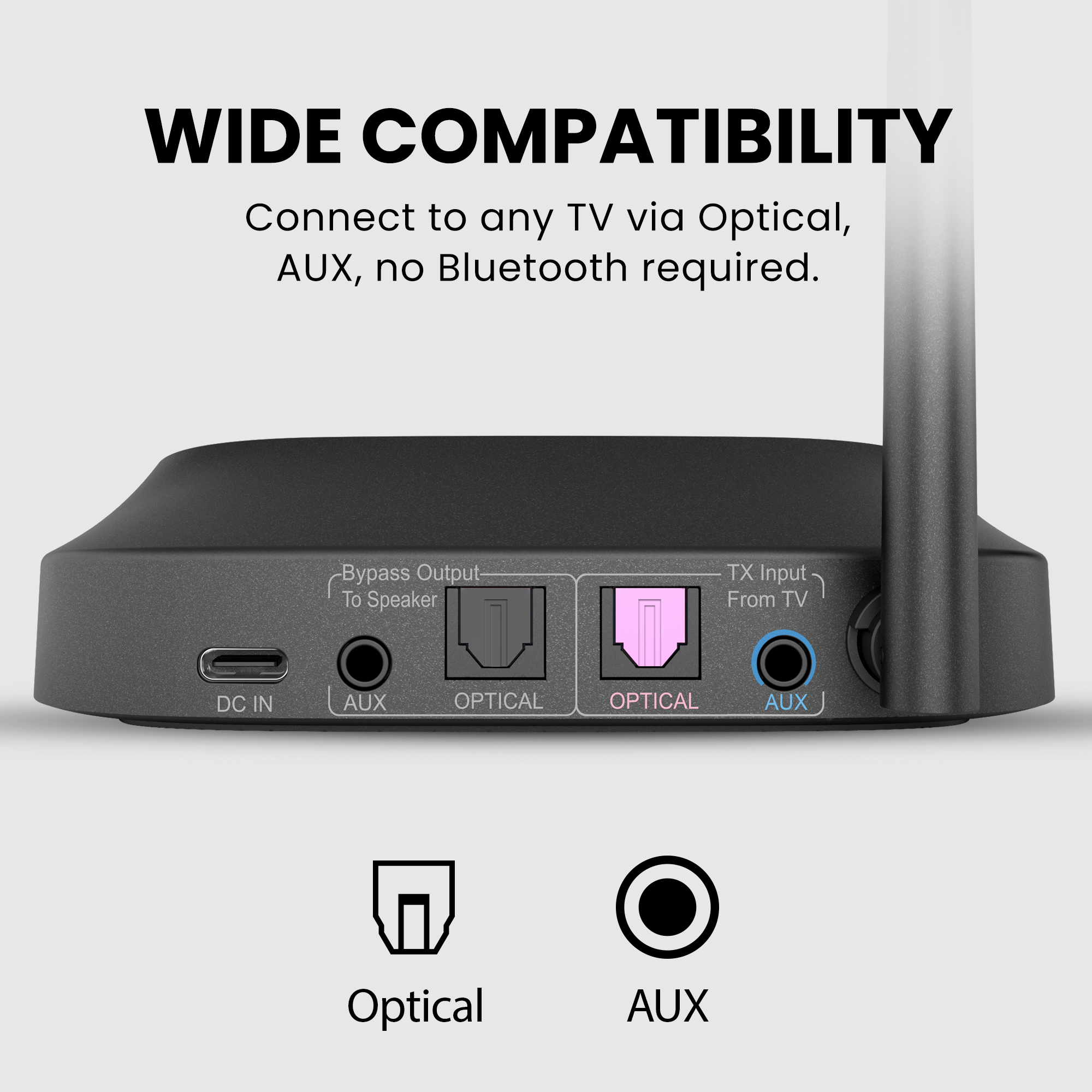 • Non-Bluetooth TVs: Use the included transmitter via OPT or AUX ports.