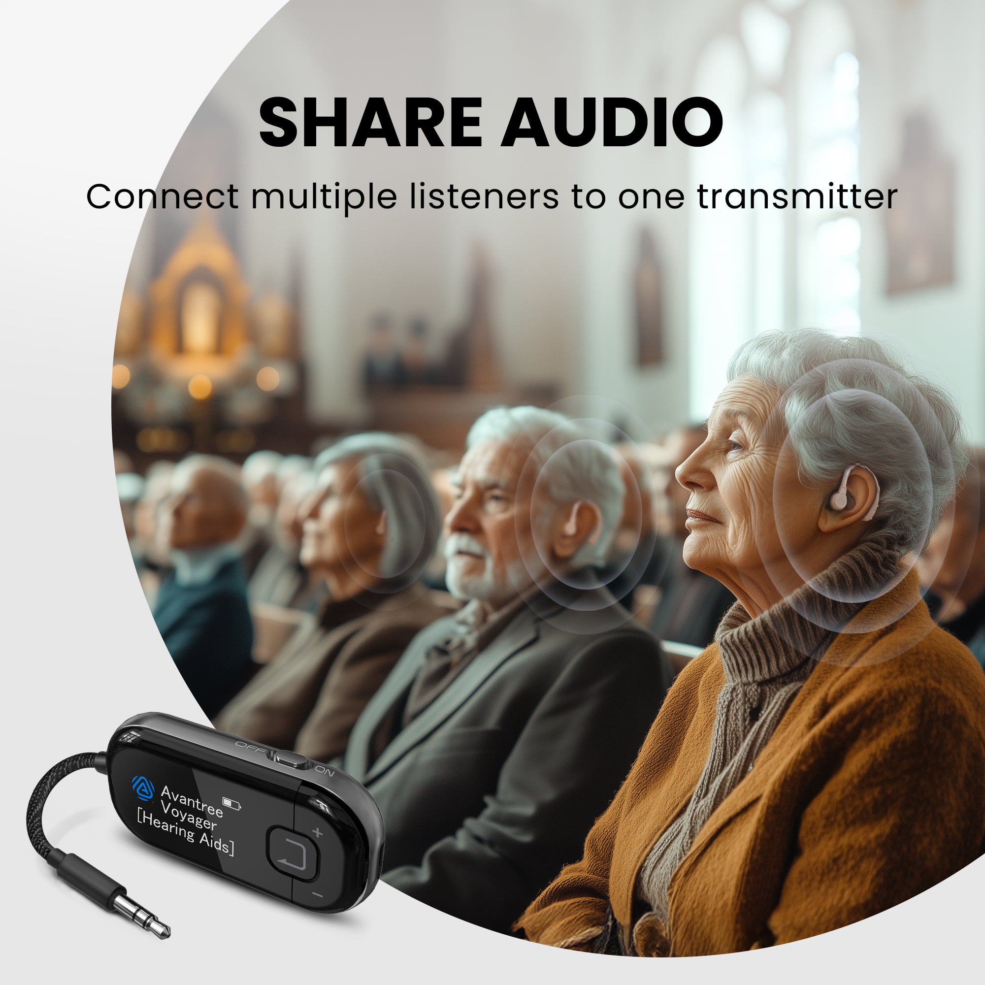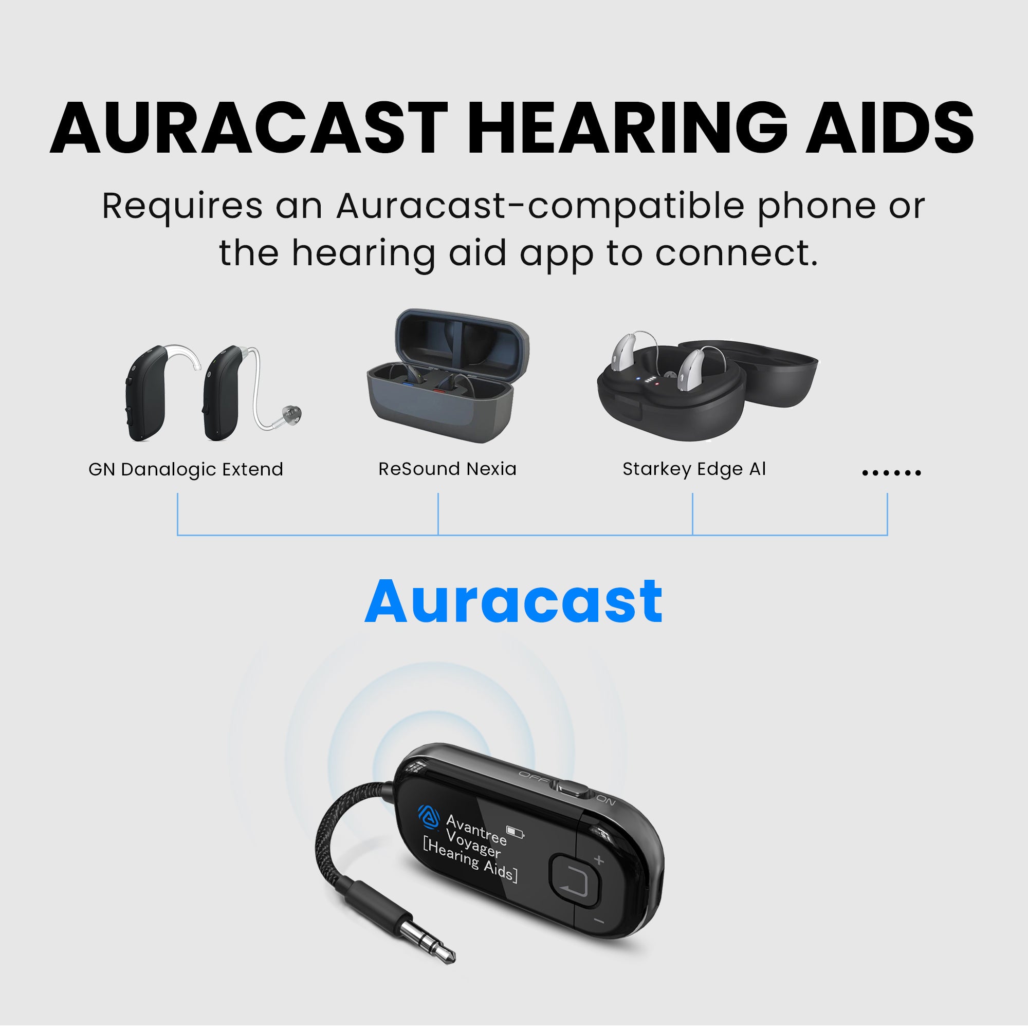 Voyager HA works with hearing aids that support either Auracast or Bluetooth. Please confirm your device’s compatibility before purchasing - Auracast is recommended for best performance.