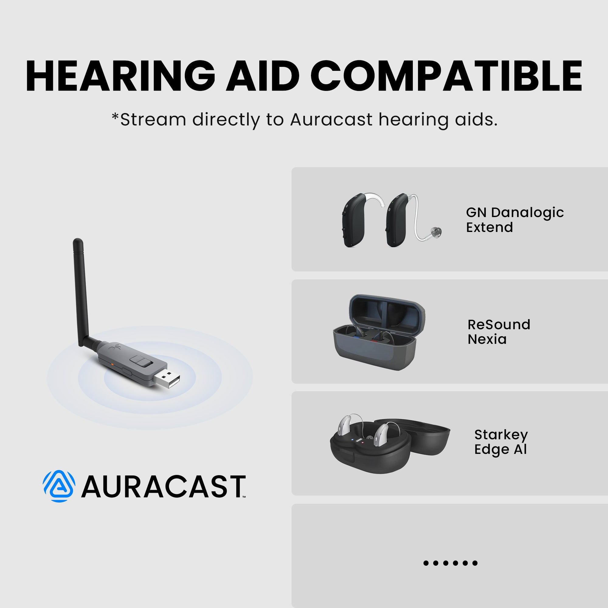 USB Auracast PC Group Listening Transmitter + 3 Receivers