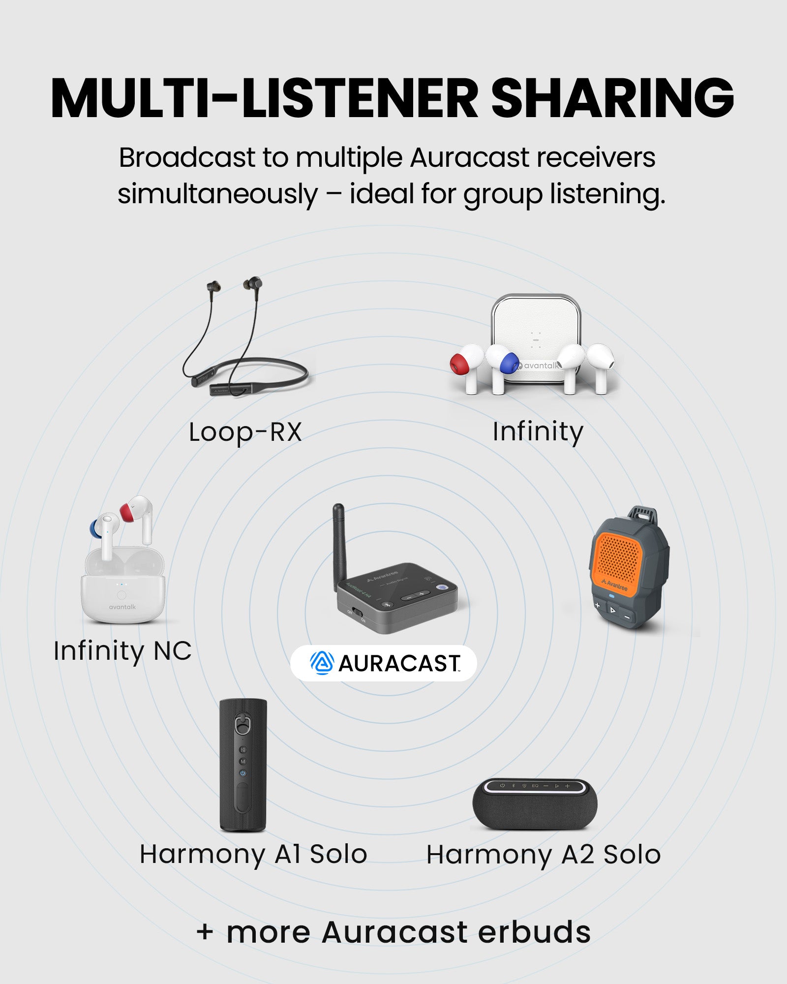 • Encrypted Audio Support – Add a password to your Auracast broadcast for a private and secure connection.