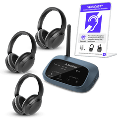 3-Receiver-1-Transmitter 2.4G Wireless Dongles Set. Connect Multiple headphones or Speakers to One audio source. Independent Volume Control, No audio lag