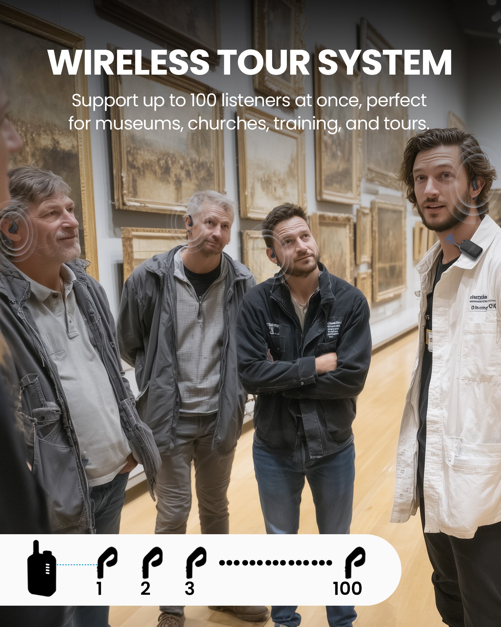 ● Assistive Listening: Ideal for churches, guided tours, classrooms, conferences, and factory visits. Ensures the speaker’s voice is delivered clearly to groups, even in noisy or spacious environments.