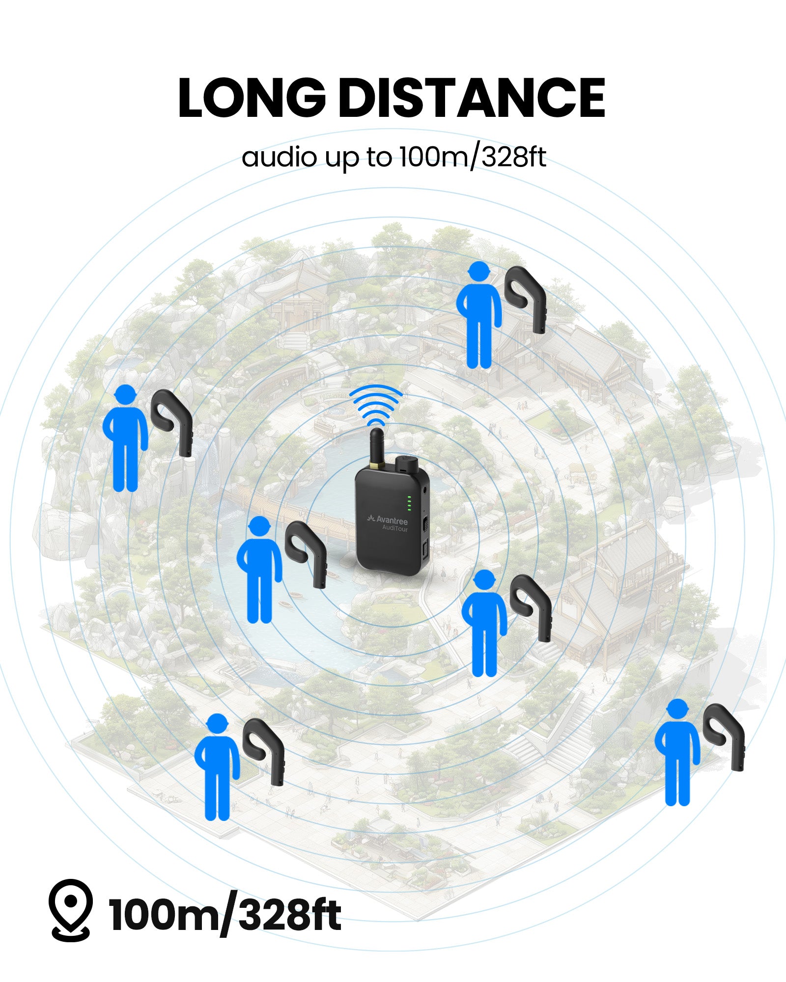 A1: No – a single transmitter can broadcast to up to 100 receivers, so one unit is enough for most tour groups and events.