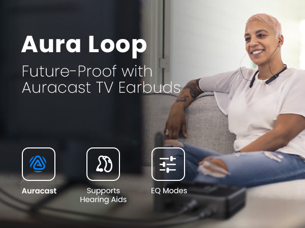 Aura Loop uses the latest Auracast Bluetooth 5.4 & LC3 for future-proof, low-latency sound — with upgradeable firmware, clear dialogue, and multi-listener support.