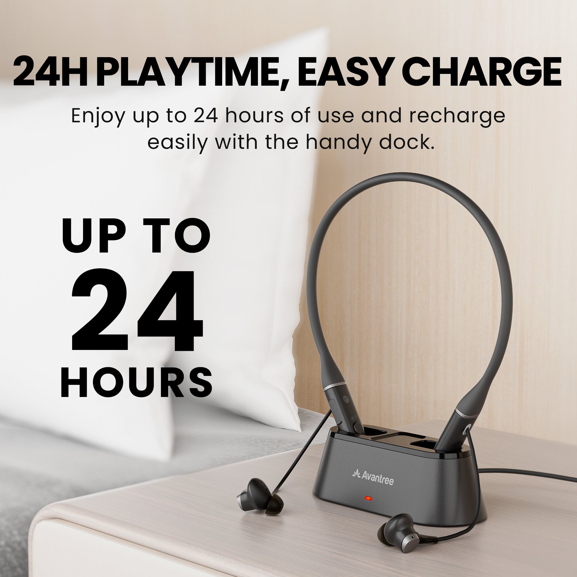 Auracast TV Earbuds with Clear Dialogue & Easy Charging Dock