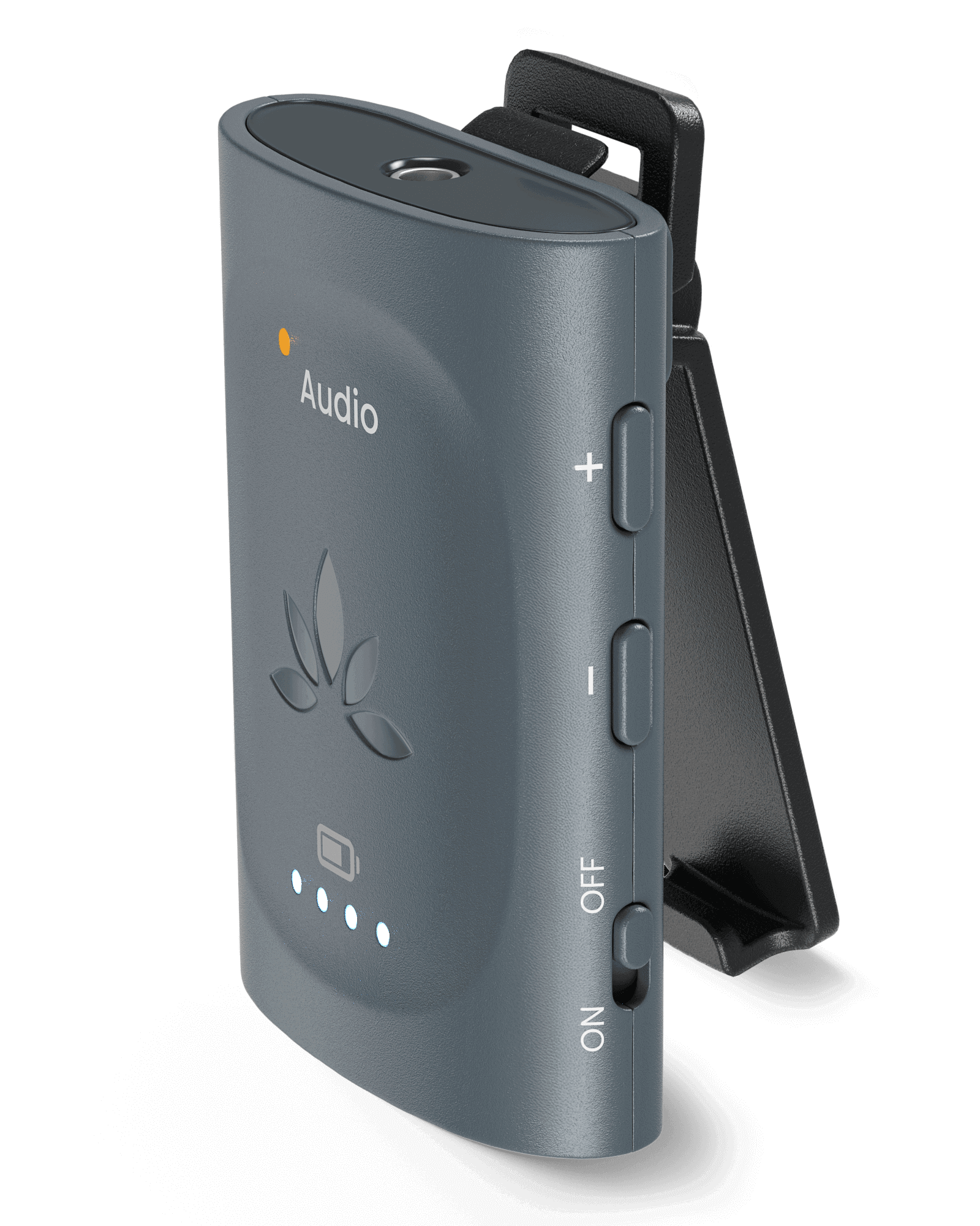 A: AuraClip supports Auracast listening up to 328ft, making it suitable for large venues like theaters, churches and lecture halls where listeners are seated far away.
