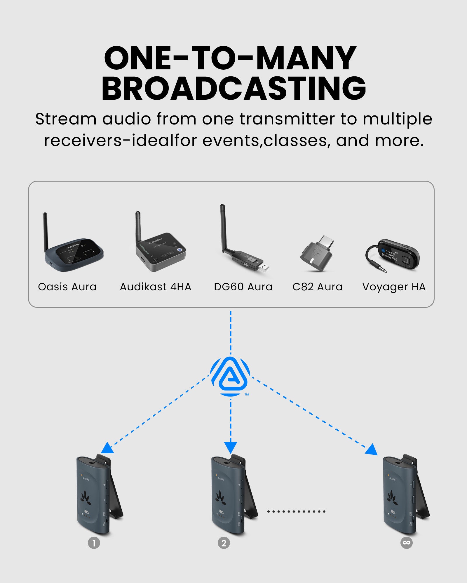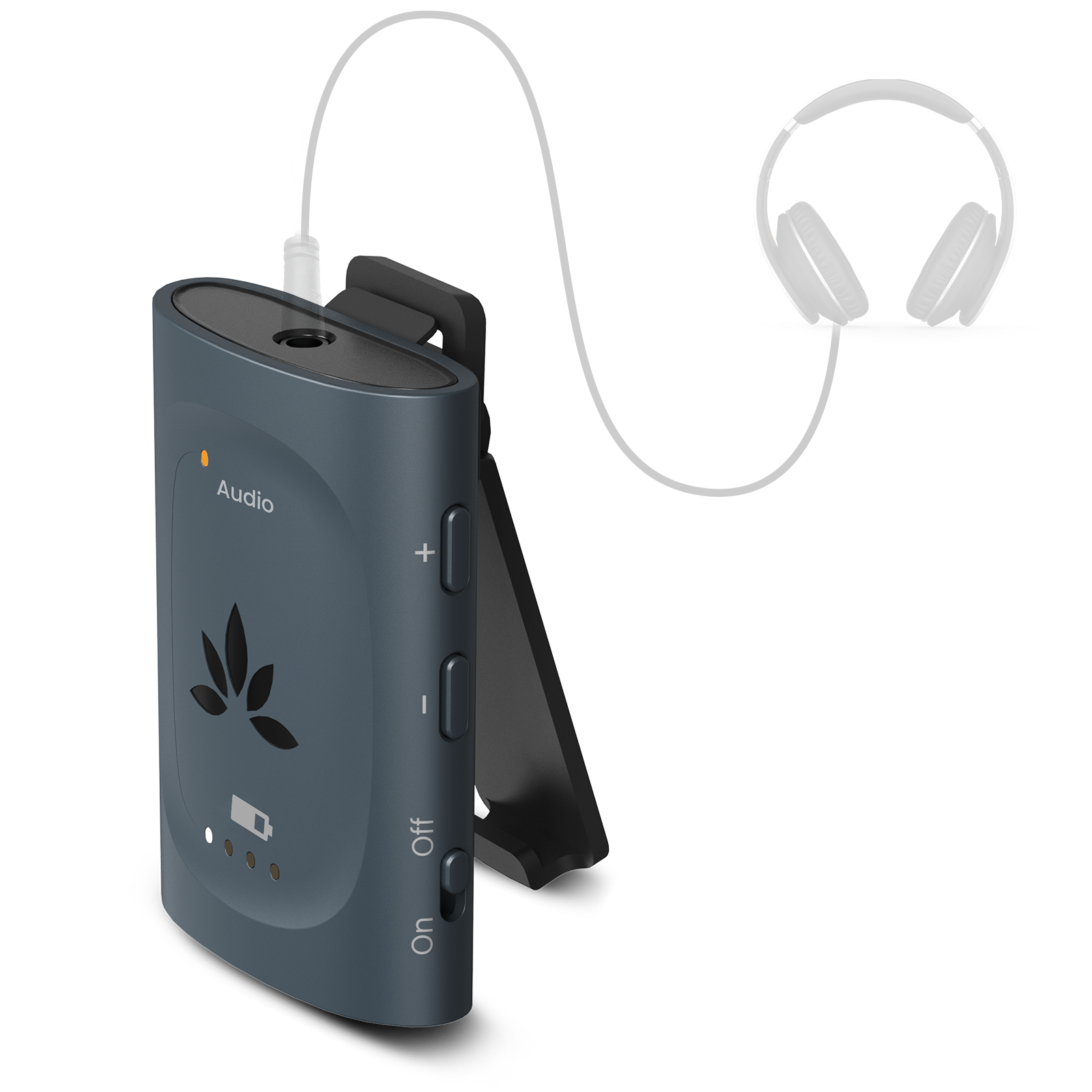 Auracast Receiver for Wired Headphones, 3.5mm Clip-On Assistive Listening Device, Save 3 Channels, 16H Battery, Church & Classroom