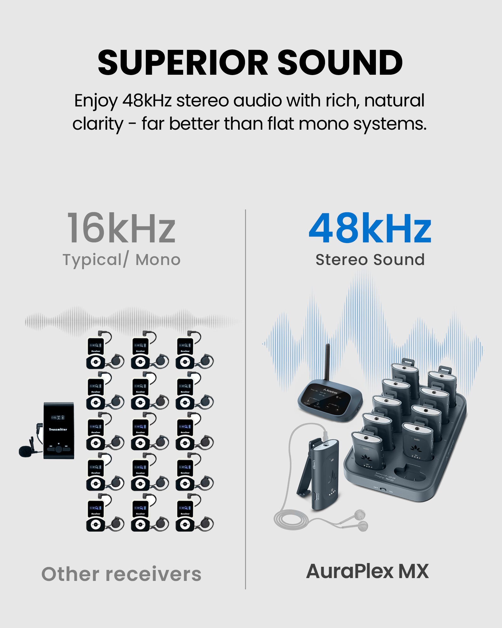 A: Yes, the AuraPlex System easily connects to your existing wireless mic and PA system through a headphone jack (AUX 3.5mm).