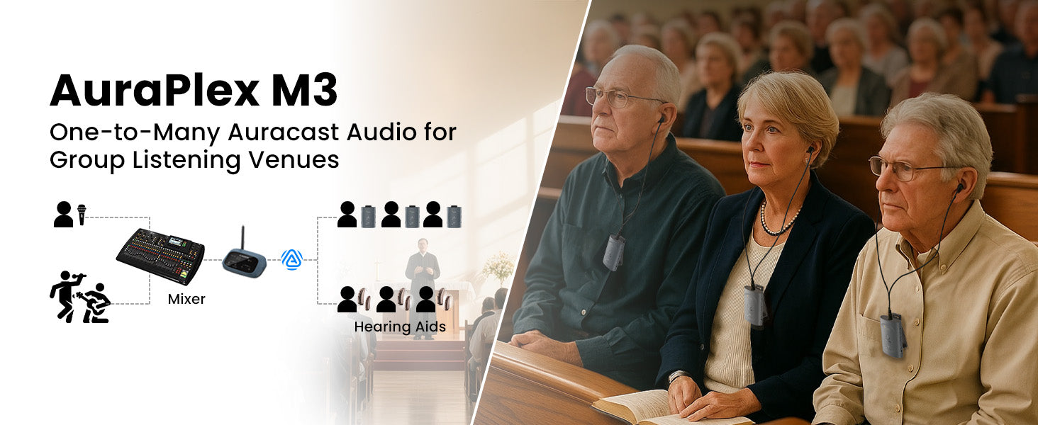 A: Choose Audiplex (2.4G) if low latency is your priority for real-time audio and synchronized sound. Choose AuraPlex for Auracast broadcast listening, including use with compatible hearing aids or Auracast headphones.