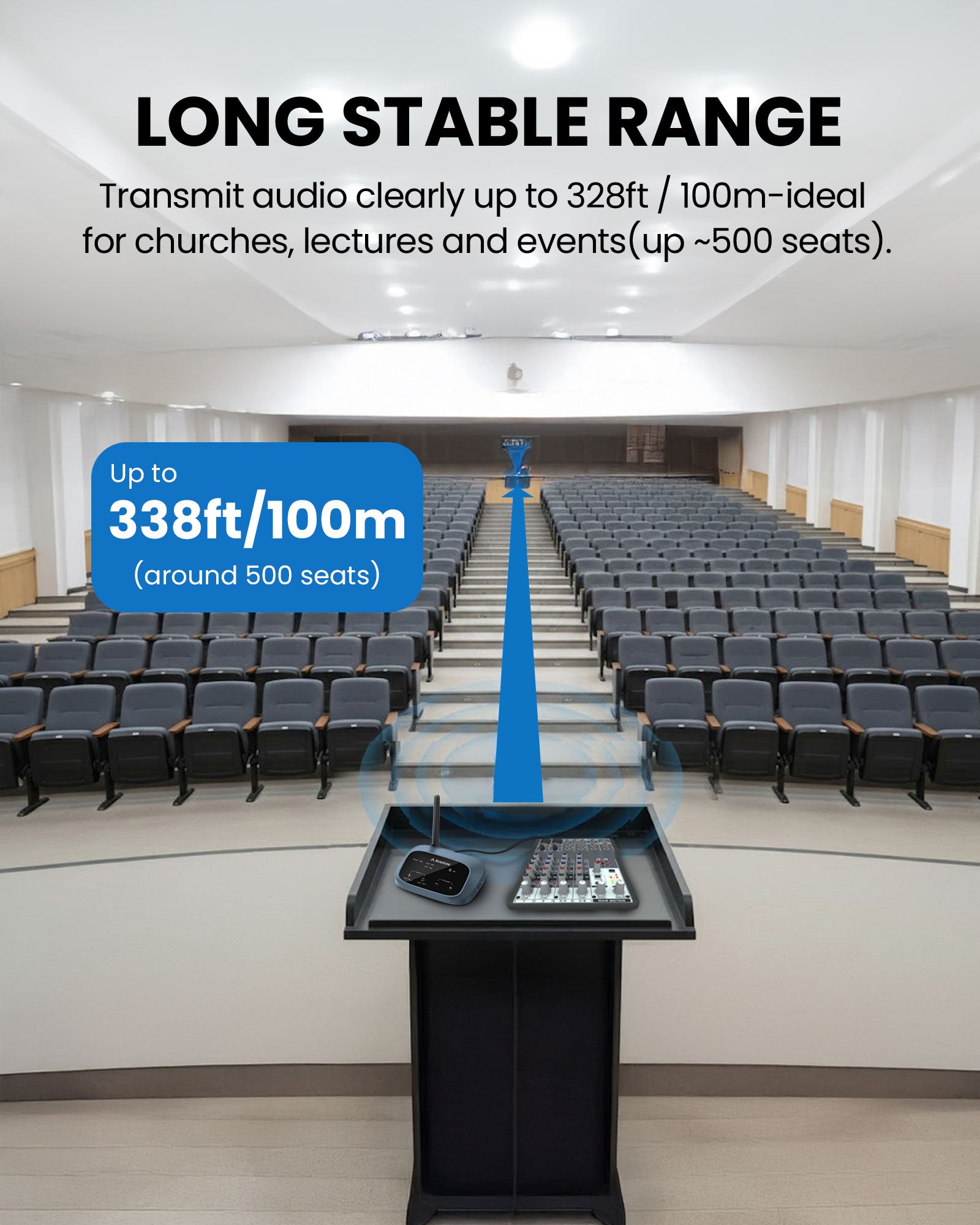 Auracast Bluetooth 5.4 Transmitter Receivers Set, Assistive Listening System One-to-Many Audio
