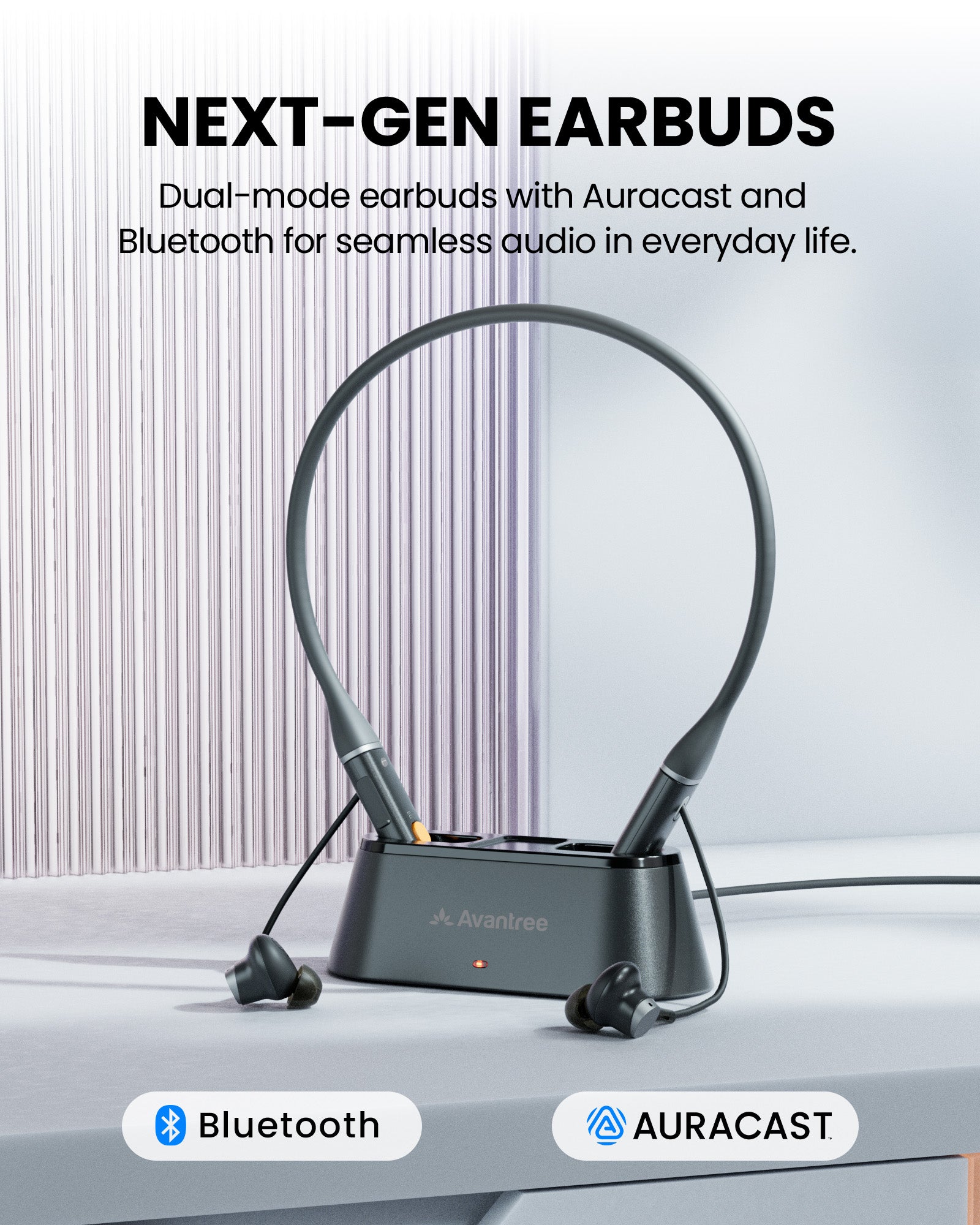 Auracast TV Earbuds with Clear Dialogue & Easy Charging Dock