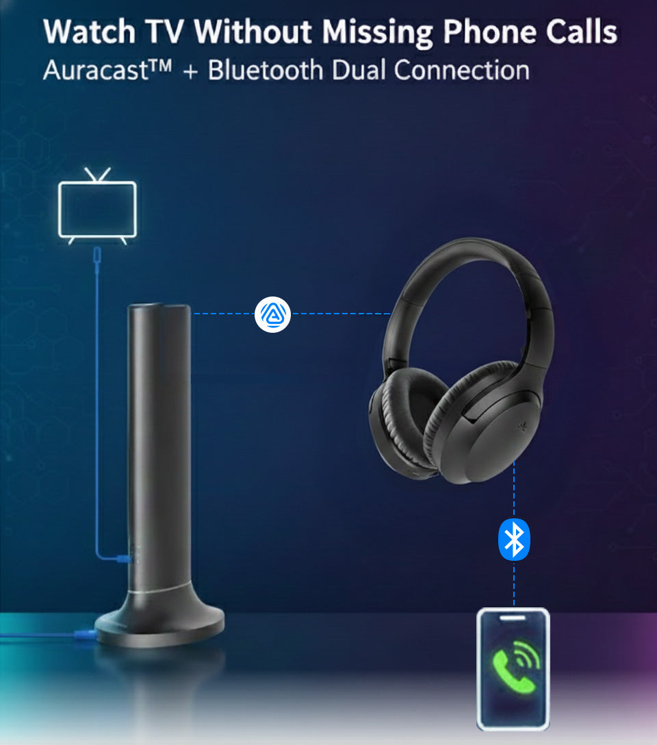 Bluetooth Auracast TV Headphones with Transmitter & Charging Base