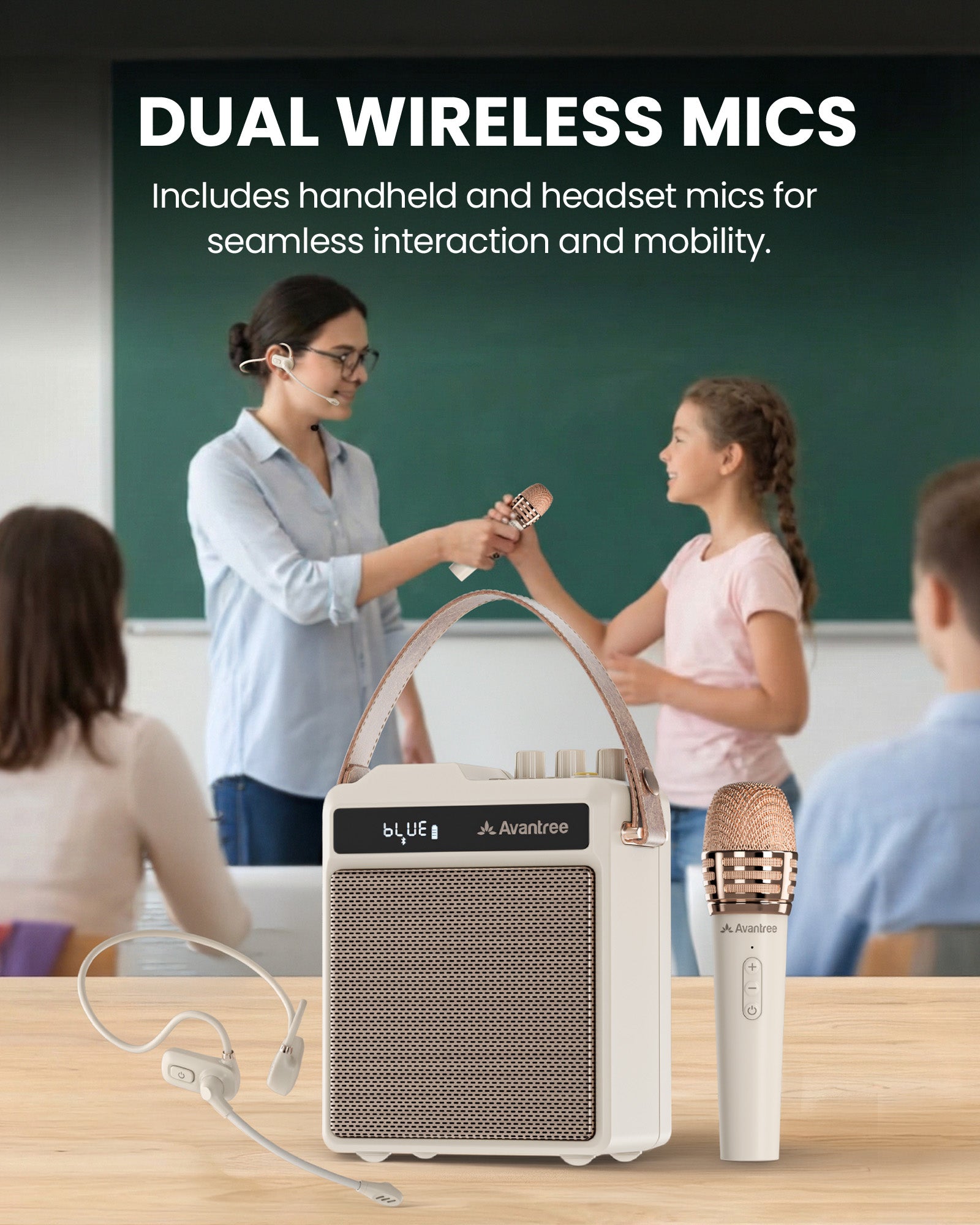 Wireless Speaker with Dual Microphone for Class, Karaoke & Small Events