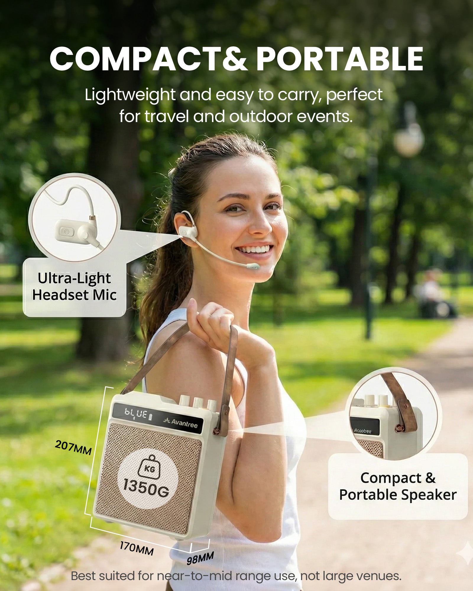 A: It can be used outdoors for small gatherings, but it is best suited for indoor or near-range use. Large outdoor spaces or noisy environments may exceed its designed sound coverage.