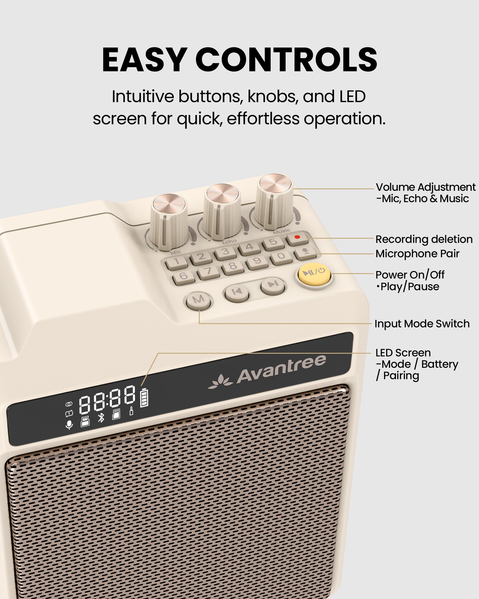 | Volume Control | Independent microphone volume & reverb control |