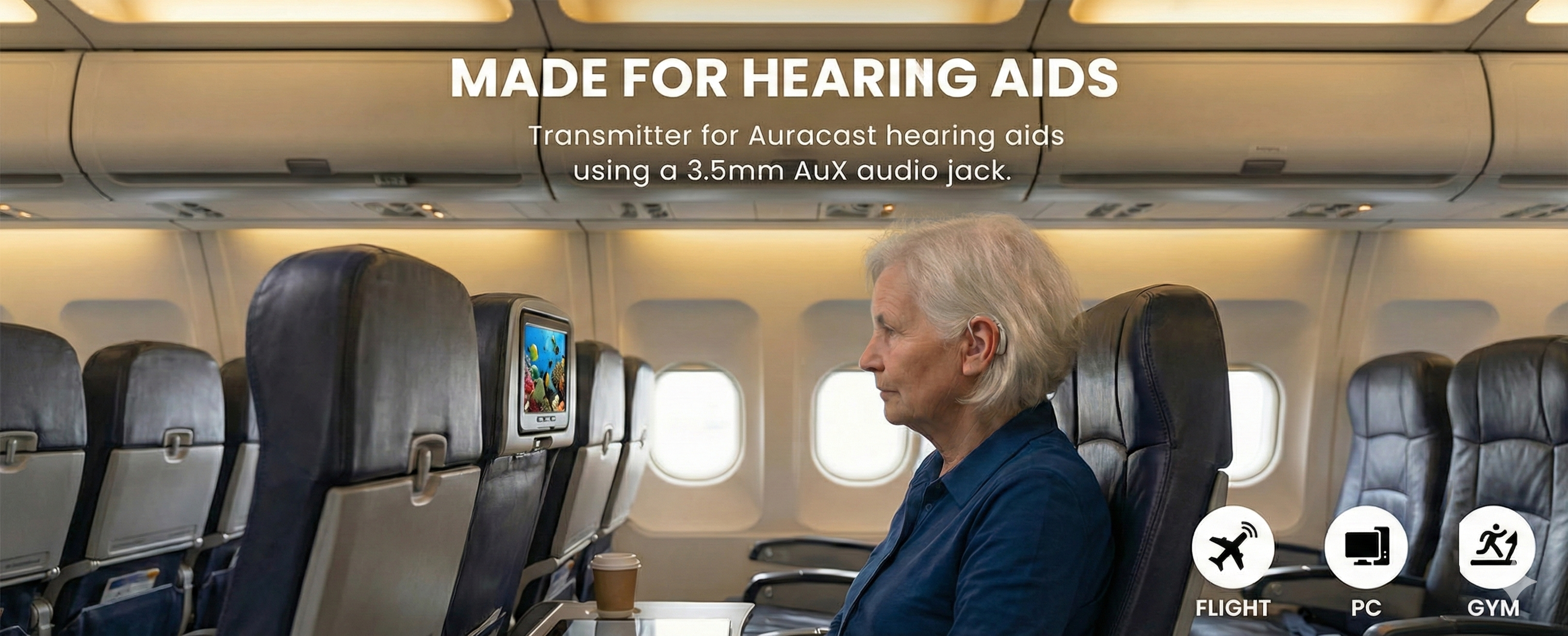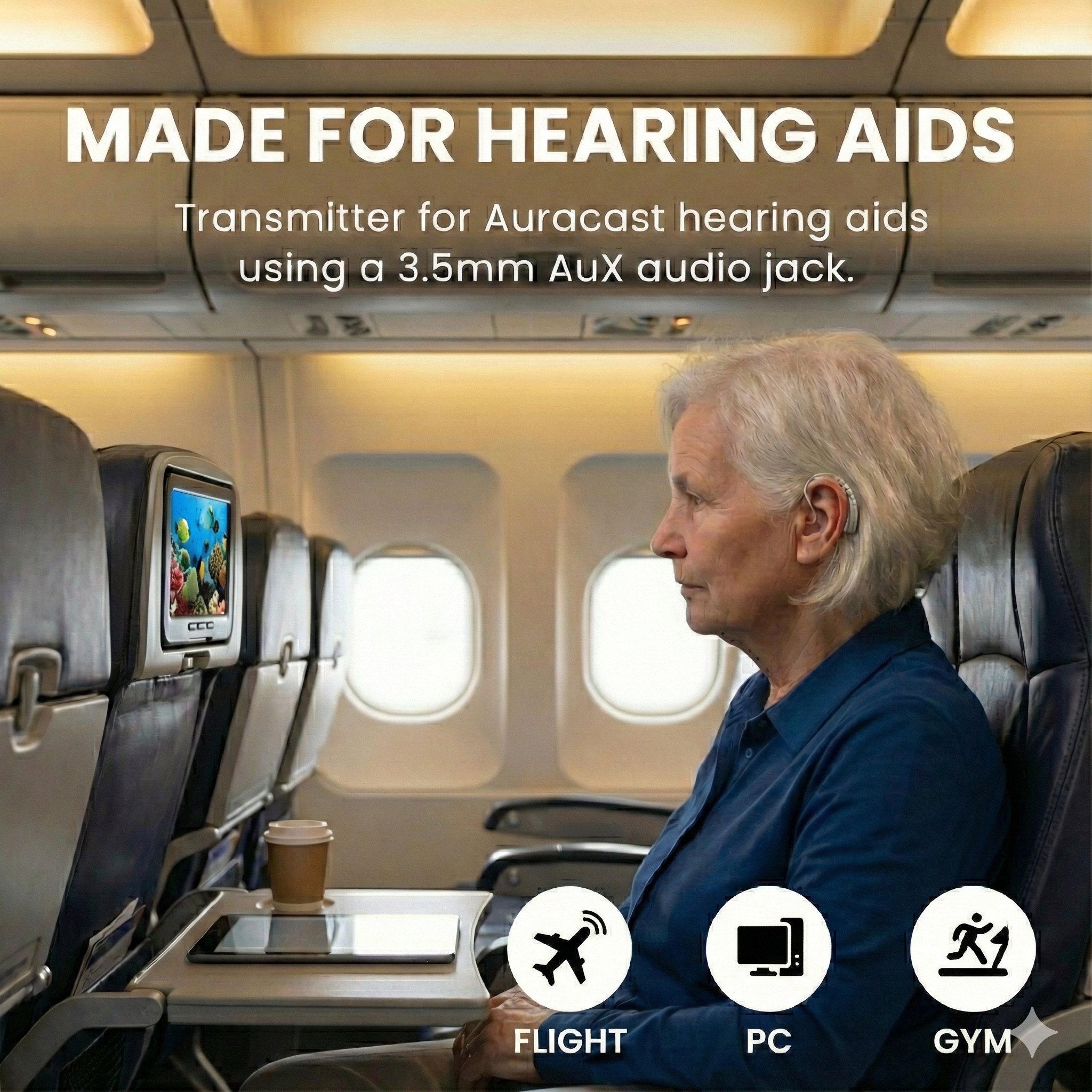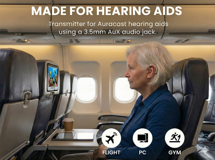Voyager HA is designed for individuals with hearing loss who use hearing aids. It enables these users to hear airplane in-flight entertainment audio or other audio sources more clearly by broadcasting directly to their hearing aids.